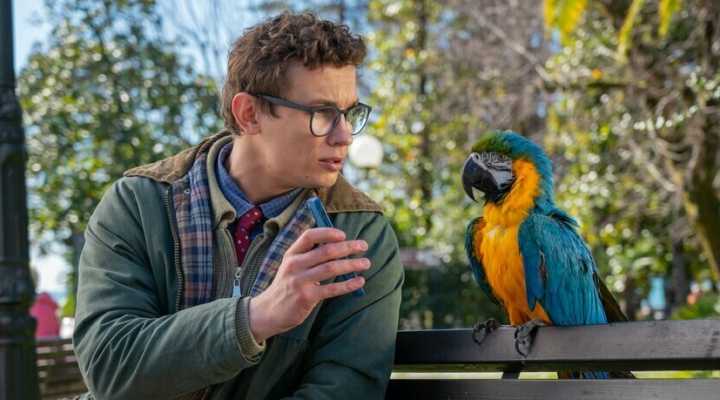Комедия Олега Асадулина наверняка придется по душе тем, кто в хмурые декабрьские дни мечтает вновь окунуться в летнюю атмосферу курортной беззаботности — действие фильма происходит в Сочи. Правда, главному герою Митяю (Никита Кологривый) не до пляжного отдыха. Во-первых, он работает учителем географии, профессию свою очень любит и постоянно придумывает для учеников всякие интересные экскурсии, за что они его просто обожают. А во-вторых, у него серьезные проблемы в личной жизни — его возлюбленная Лера (Ирина Безряднова) возжелала богатой жизни с дорогими автомобилями и брендовыми шмотками. Малооплачиваемый бюджетник, естественно, такие потребности удовлетворить не в состоянии, и эффектная красотка предлагает приостановить отношения, пока ее бойфренд не разбогатеет. Непонятно, зачем Митяю такая меркантильная девица, но любовь, как известно, зла, и вот уже незадачливый педагог ищет подработки везде, где только можно. Наконец ему удается взять в аренду у некоего Гамлета (Роман Курцын) громадного говорящего попугая Иннокентия с ослепительно ярким оперением — фотографироваться с курортниками. Вскоре обнаруживается, что птица ему попалась непростая…